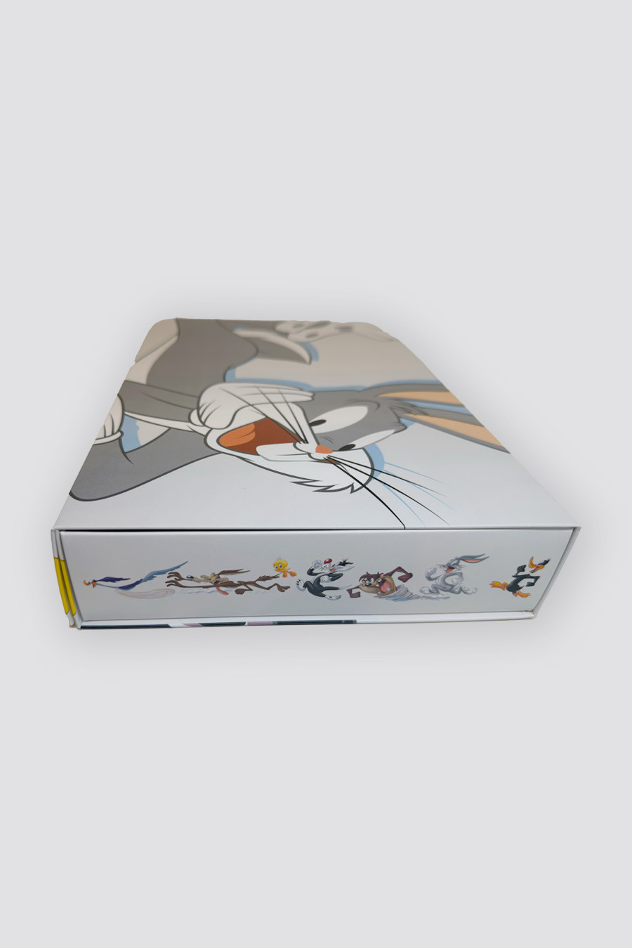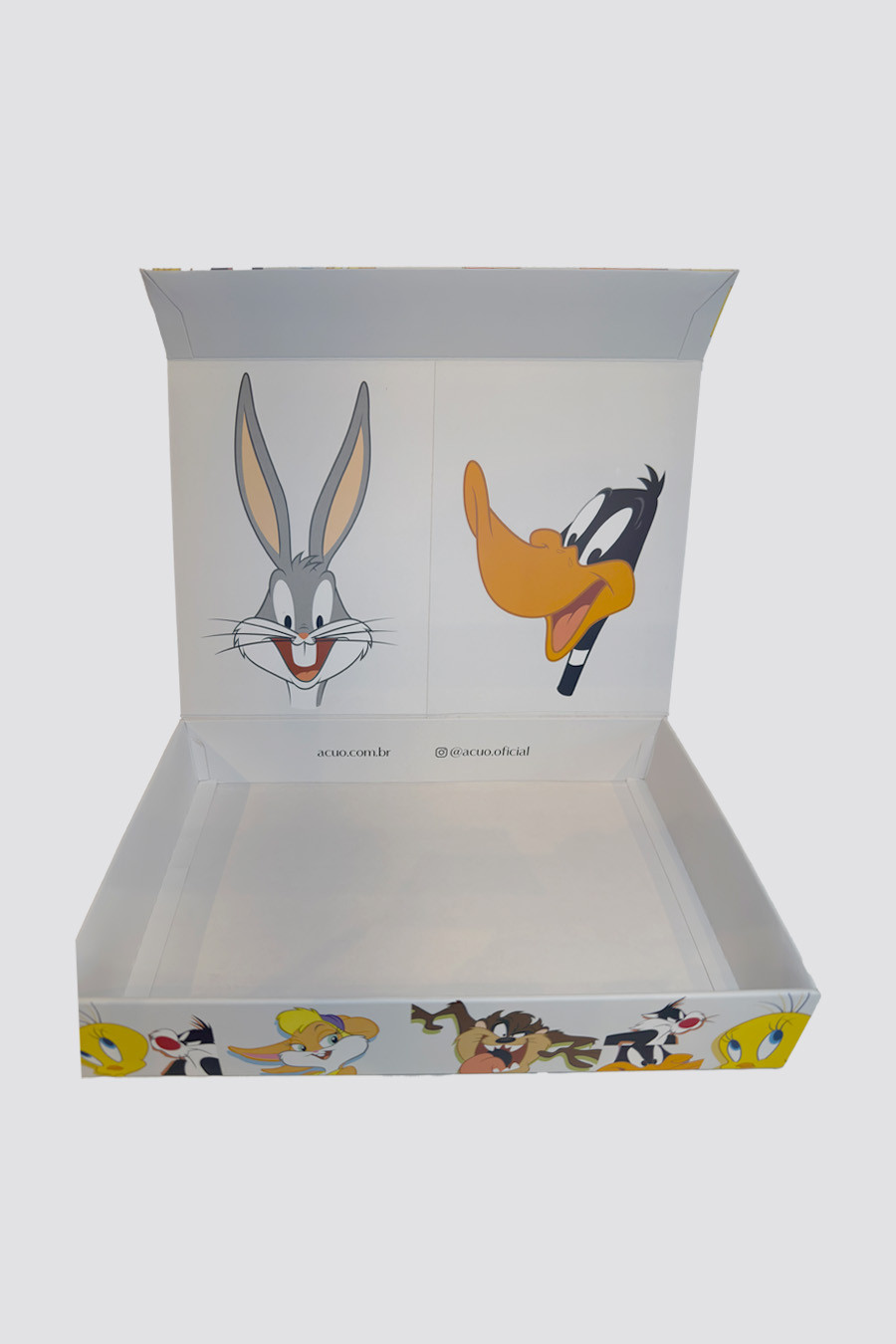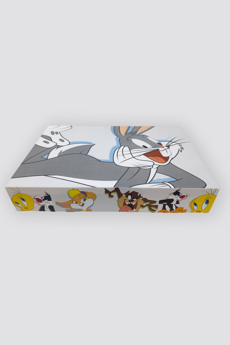 A coleção inspirada no universo Looney Tunes celebra o tempo do brincar como forma de aliviar o estresse e resgatar a leveza do dia a dia. Em um cenário de rotinas intensas, a proposta valoriza a diversão, o humor e a criatividade, trazendo personagens clássicos em composições coloridas e cheias de movimento. Uma coleção que convida a desacelerar, sorrir e aproveitar momentos de descontração com conforto e espontaneidade. A caixa feita em papelão reforçado e com toque suave, conta com a estampa da coleção do lado externo e interno. E para melhor acabamento e experiência de uso, o fechamento é magnético.
