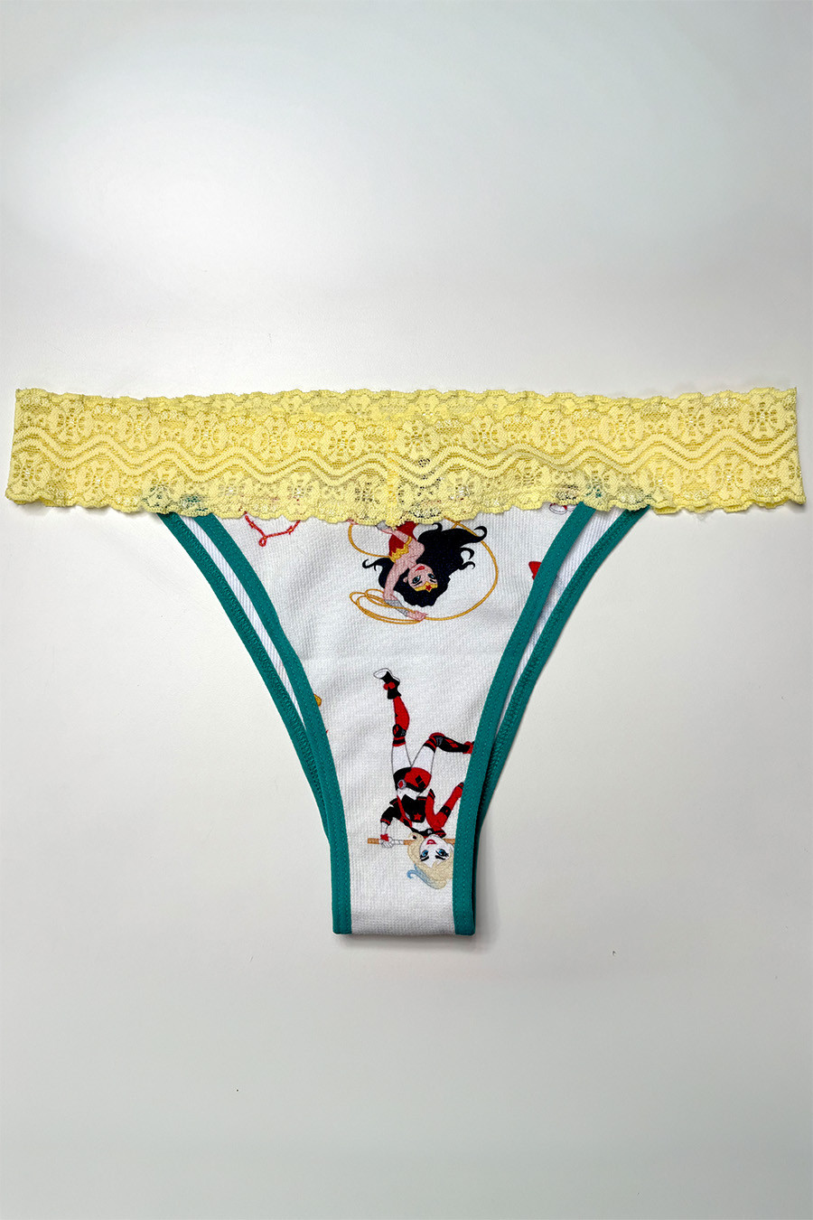 Calcinha confeccionada em ribana de algodão que se destaca pela sua elasticidade e resistência. Suas laterais são finas com renda que proporciona maior ajuste ao corpo, forro confeccionado em 100% de algodão.