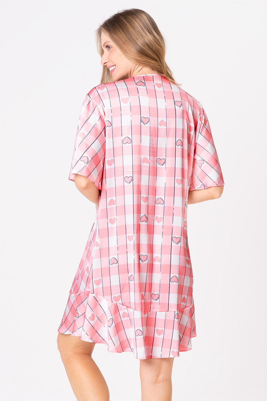 A estampa Pinknic traz uma versão jovem e animada do clássico vichy, com um toque lúdico que reflete momentos de aconchego e descontração.Perfeita para mulheres modernas e românticas, ela combina frescor e sofisticação, sendo uma escolha ideal para um presente único. A estampa transmite alegria e carinho, celebrando a feminilidade com personalidade.Camisola confeccionada em tecido acetinado gloss, que proporciona liberdade de movimento e uma sensação fresca durante as noites. Peça na estampa exclusiva da coleção, possui comprimento médio, abotoamento frontal e decote em V, perfeito para amamentar.