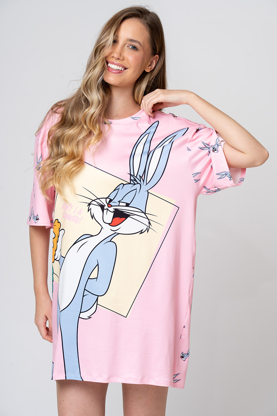 Camisola confeccionada em malha touch, com toque extremamente macio e confortável. Possui modelagem ampla, mangas curtas e estampa frontal do personagem Pernalonga em destaque, trazendo um visual divertido e descontraído. Ideal para noites leves e momentos de descanso, une conforto, praticidade e o charme dos personagens clássicos Looney Tunes. Coleção Licenciada Oficial Warner Bros.
