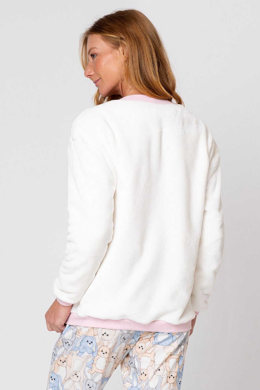 Este casaco é confeccionado em fleece, garantindo aquecimento e toque macio para os dias mais frios. O modelo conta com fechamento frontal por botões, punhos ajustados que ajudam a manter o calor e acabamento confortável ao vestir. Uma peça prática, quentinha e acolhedora, perfeita para complementar os looks da coleção com ainda mais aconchego.