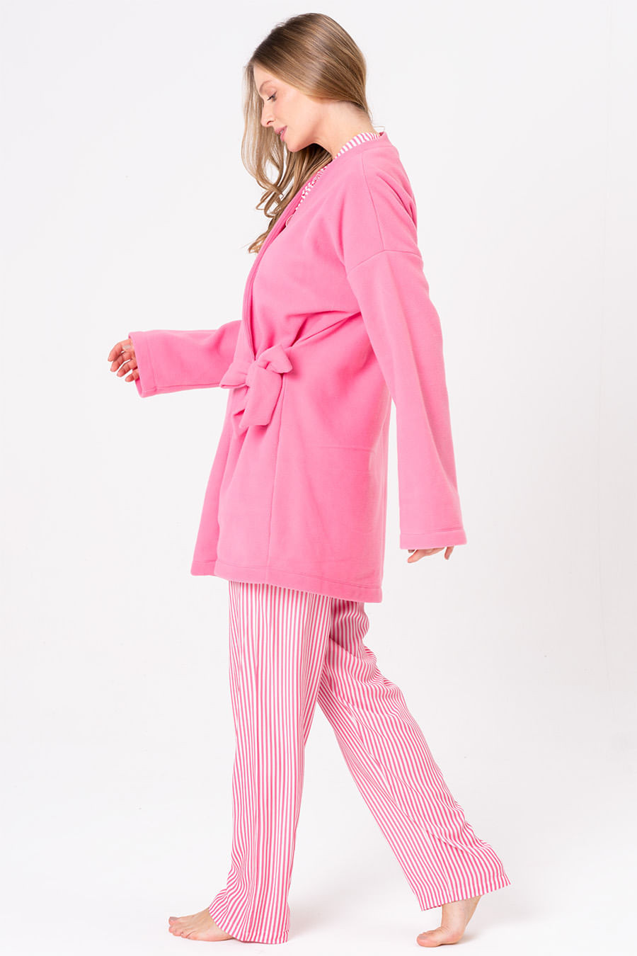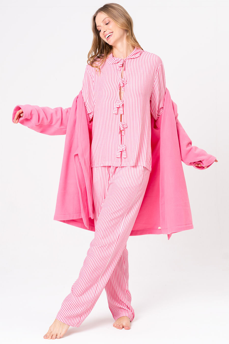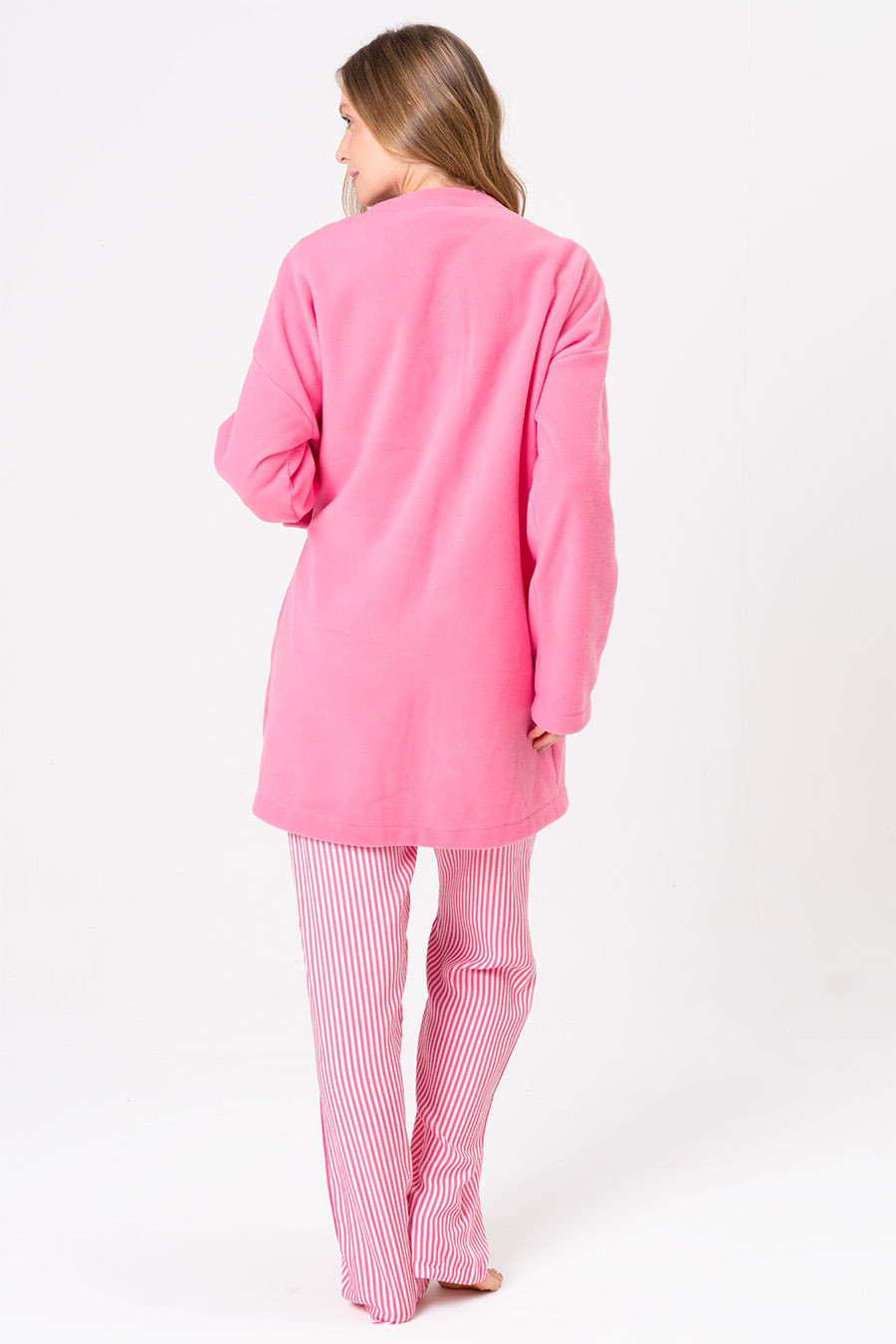 A coleção Entrelaços combina delicadeza e ousadia com traços femininos, tornando-se uma coleção totalmente fashionista e marcante. Criada para mulheres confiantes, a coleção transmite feminilidade de forma audaciosa e sem timidez, refletindo a força de quem se expressa com autenticidade e personalidade. Casaco feminino em soft com amarração frontal. A peça conta com bolso frontal e modelagem ampla para melhor conforto nos dias de frio.