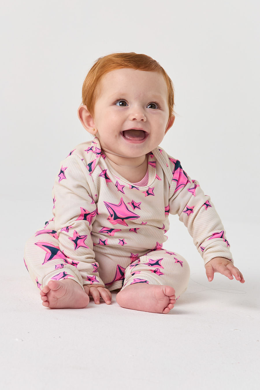 Com a Coleção Glam, você pode brilhar todas as noites. Não importa se você é uma amante do estilo, do conforto ou da moda, nossos pijamas foram feitos para você. Adicione um toque de glamour à sua hora de dormir e desfrute do luxo e da elegância que só ela pode proporcionar.As estampas de estrela dão um toque de glamour a cada peça, tornando cada noite de descanso uma experiência especial. Quer você esteja relaxando em casa, tendo uma festa do pijama com as amigas ou apenas desfrutando de uma noite tranquila, a glam é a escolha perfeita! Macaquinho confeccionado em moletinho, tecido com toque macio, caimento leve e muito confortável, perfeito para o dia a dia. Peça com estampa exclusiva da coleção. Possui abotoamento entre as pernas para facilitar a vestimenta do seu baby.