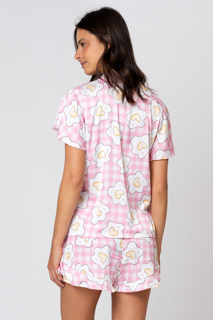 A coleção Amovo aposta em uma linguagem divertida e afetiva, inspirada na nostalgia das comidas simples da infância e no lado emocional que elas despertam. A estampa brinca com o clássico ovo frito, transformando a clara em flor e a gema em coração, criando um visual leve, irreverente e cheio de charme. Com cores suaves e desenhos delicados, a coleção transmite bom humor, aconchego e aquele clima gostoso de manhã preguiçosa, perfeita para quem gosta de conforto com personalidade e um toque lúdico no dia a dia.