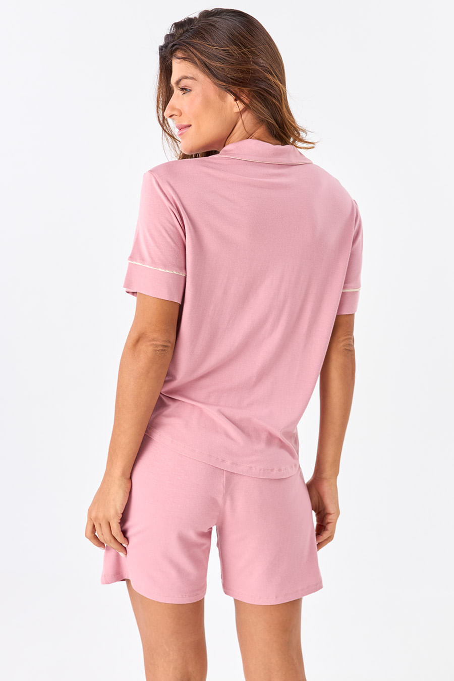 Básico e clássico, com cores sólidas e sem muitos detalhes, a coleção Clássicos Viscose é versátil e fácil de agradar. Ideal para presentear ou para se tornar seu pijama básico favorito.O design do pijama americano é conhecido por seu caimento solto e confortável, perfeito para uma noite de sono sem restrições. O estilo é descontraído e fácil de usar. A peça contém botões e gola em V perfeito para amamentação, short com modelagem reta conta com elástico em seu cós que se ajusta perfeitamente à cintura, garantindo conforto e facilidade ao vestir. Detalhes em tecido acetinado.