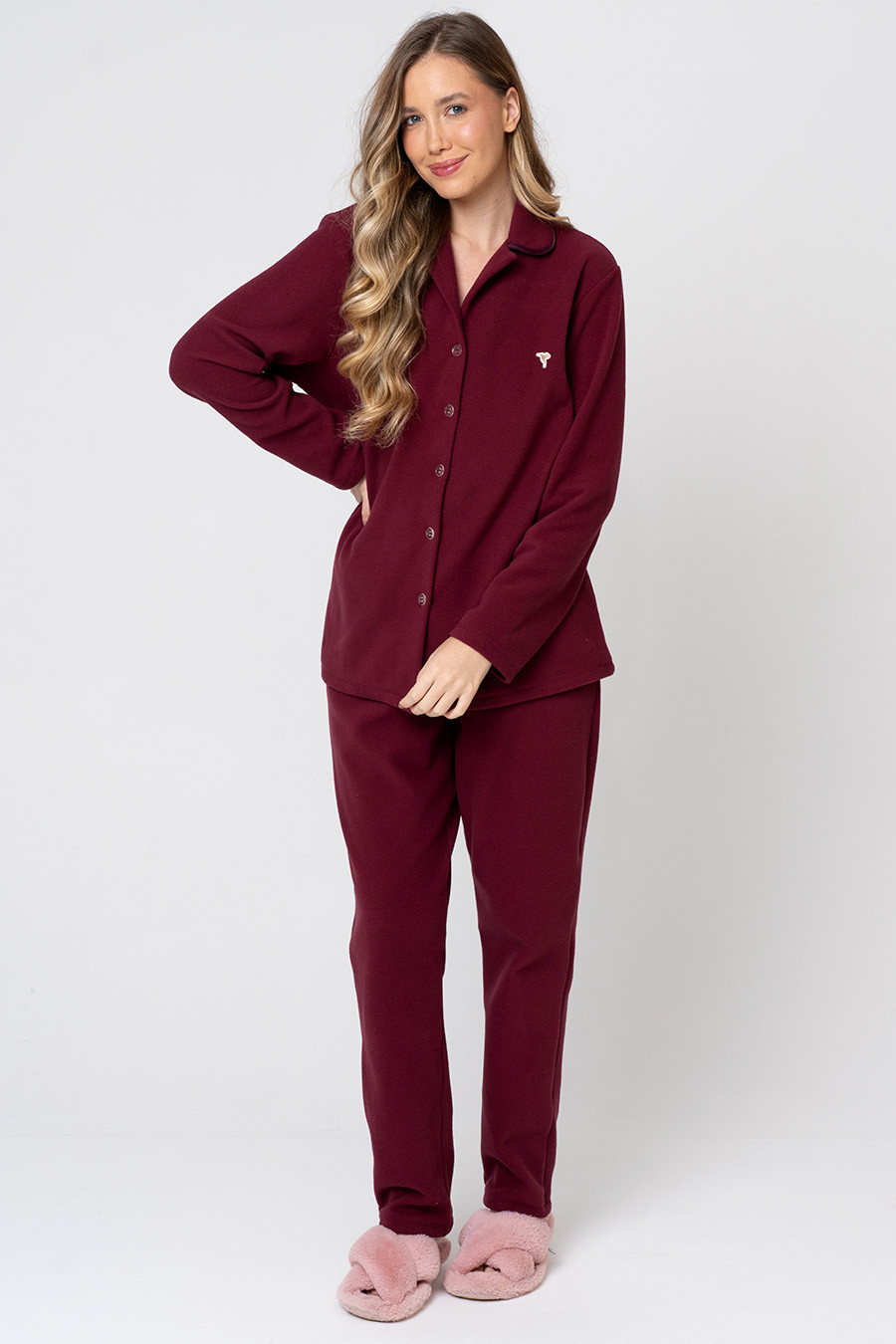 O pijama possui modelagem confortável e clássica. A blusa de manga longa conta com fechamento frontal por botões e gola tradicional, garantindo praticidade e um vestir agradável. A calça apresenta caimento confortável e elástico no cós, proporcionando liberdade de movimento ao longo do uso. Um conjunto aconchegante e funcional, ideal para relaxar em casa com conforto e simplicidade.