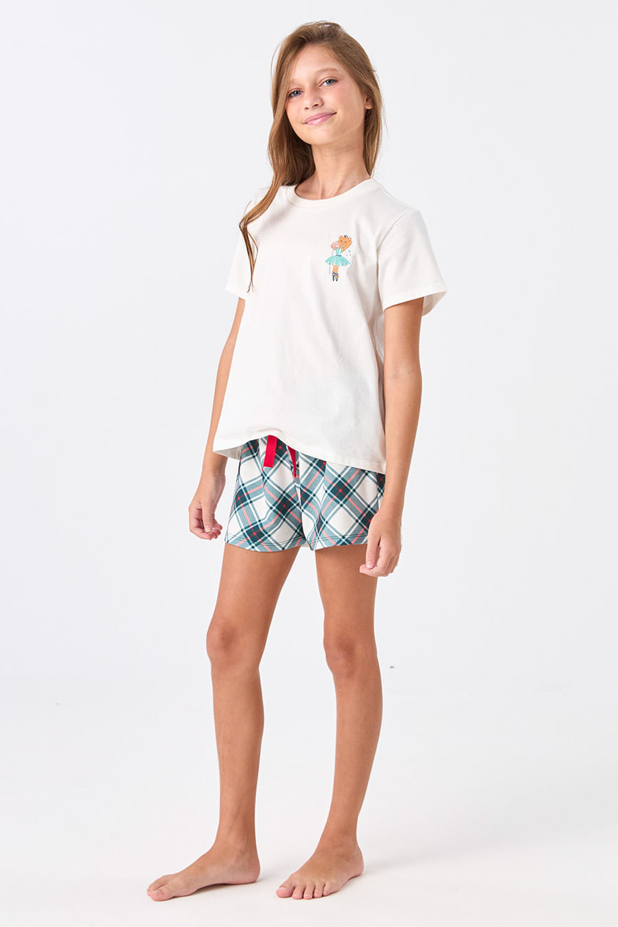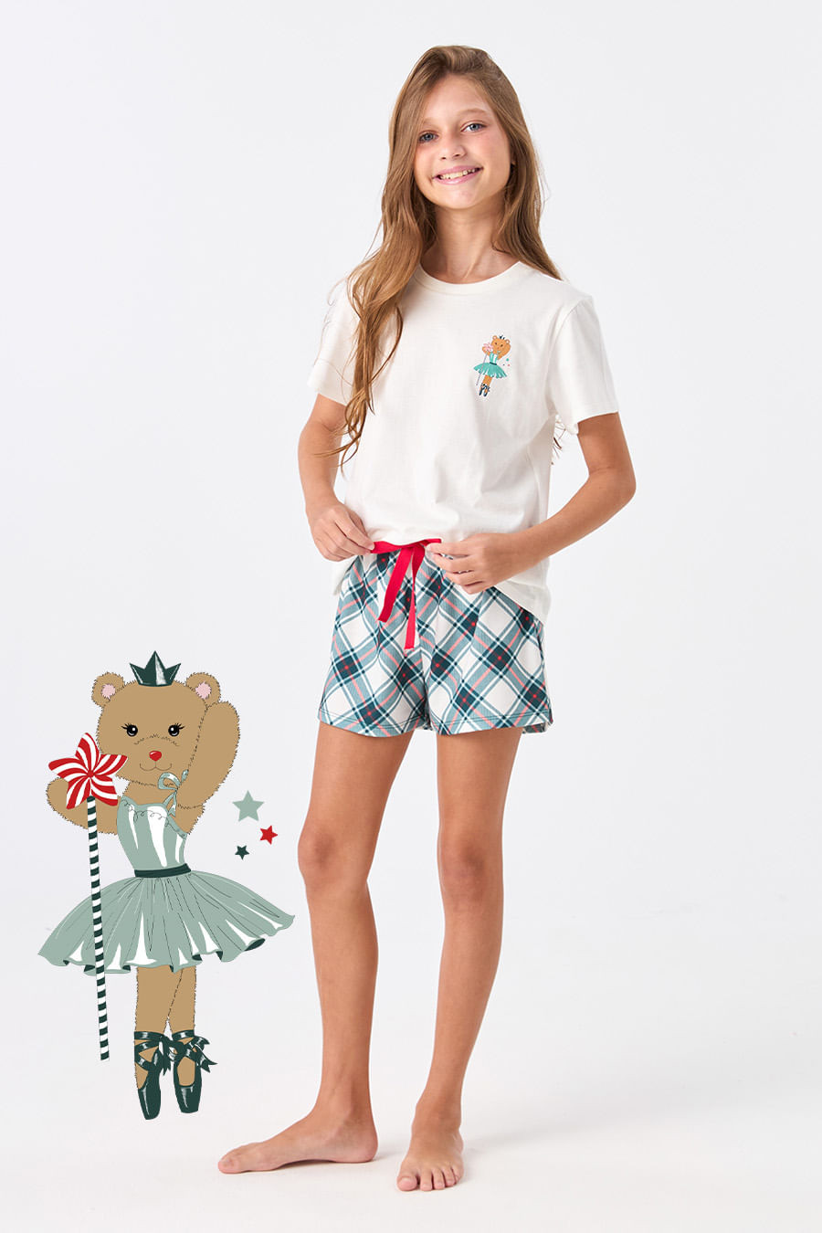 Neste Natal, os nossos pijamas inspiram conforto e magia, nos transportando para um mundo encantado, tal como o de Clara e o seu Quebra-Nozes. Assim como os ursos encontram calor e proteção durante a hibernação, os nossos pijamas envolvem em um abraço aconchegante, convidando a sonhar com a magia desta época especial. Pijama na estampa exclusiva da coleção. Confeccionado em algodão, tecido bastante respirável, que regula a temperatura do corpo e evita a sensação de abafamento durante a noite. Fio natural, hipoalergênico que evita irritações na pele. Blusa de manga curta, com silk localizado e short com elástico e gorgorão vermelho em seu cós que se ajusta perfeitamente à cintura, garantindo conforto e facilidade ao vestir. Combine com toda a família com os outros pijamas da coleção!