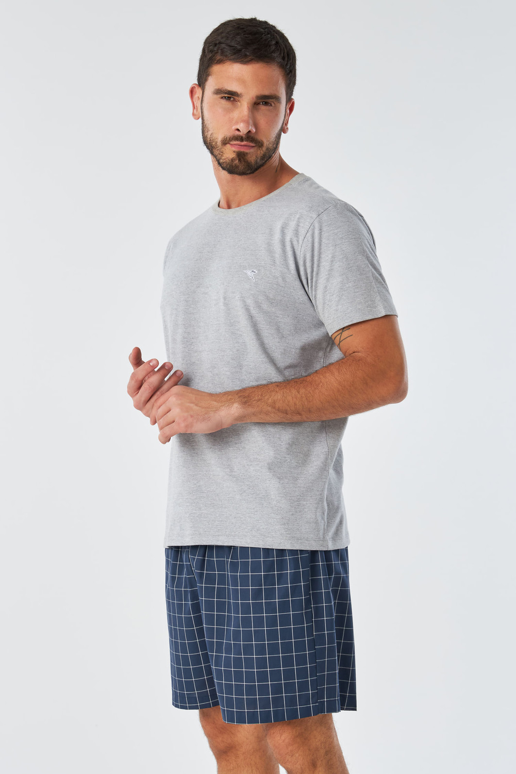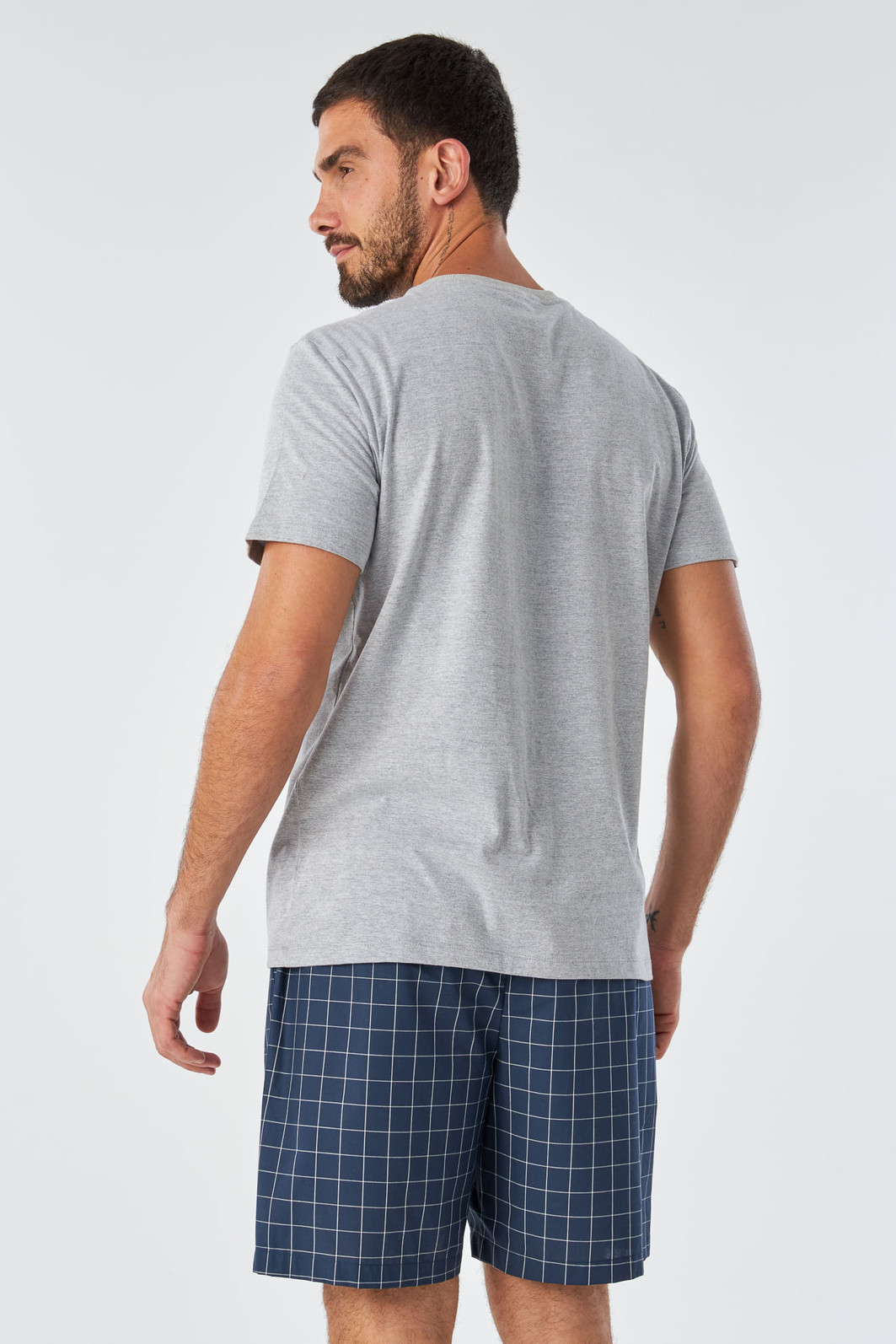 A coleção Clássicos Cambraia veio para trazer versatilidade ao seu dia a dia, as peças são produzidas com o intuito de você utilizar em casa ou até mesmo na rua montando um look mais despojado. Com camiseta confeccionada em algodão e bermuda em cambraia, tecido também de algodão com caimento leve, esse conjunto foi feito para homens que não abrem mão de conforto. Em padronagem xadrez com cores clássicas e modernas esse pijama é uma ótima aposta para uma noite de sono mais estilosa. Blusa na cor mescla com silk localizada na parte frontal superior esquerda. Bermuda possui elástico amplo no cós.