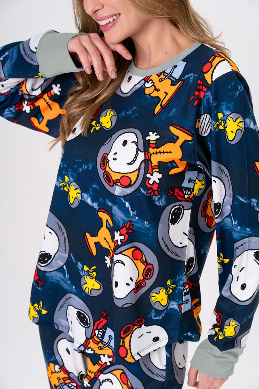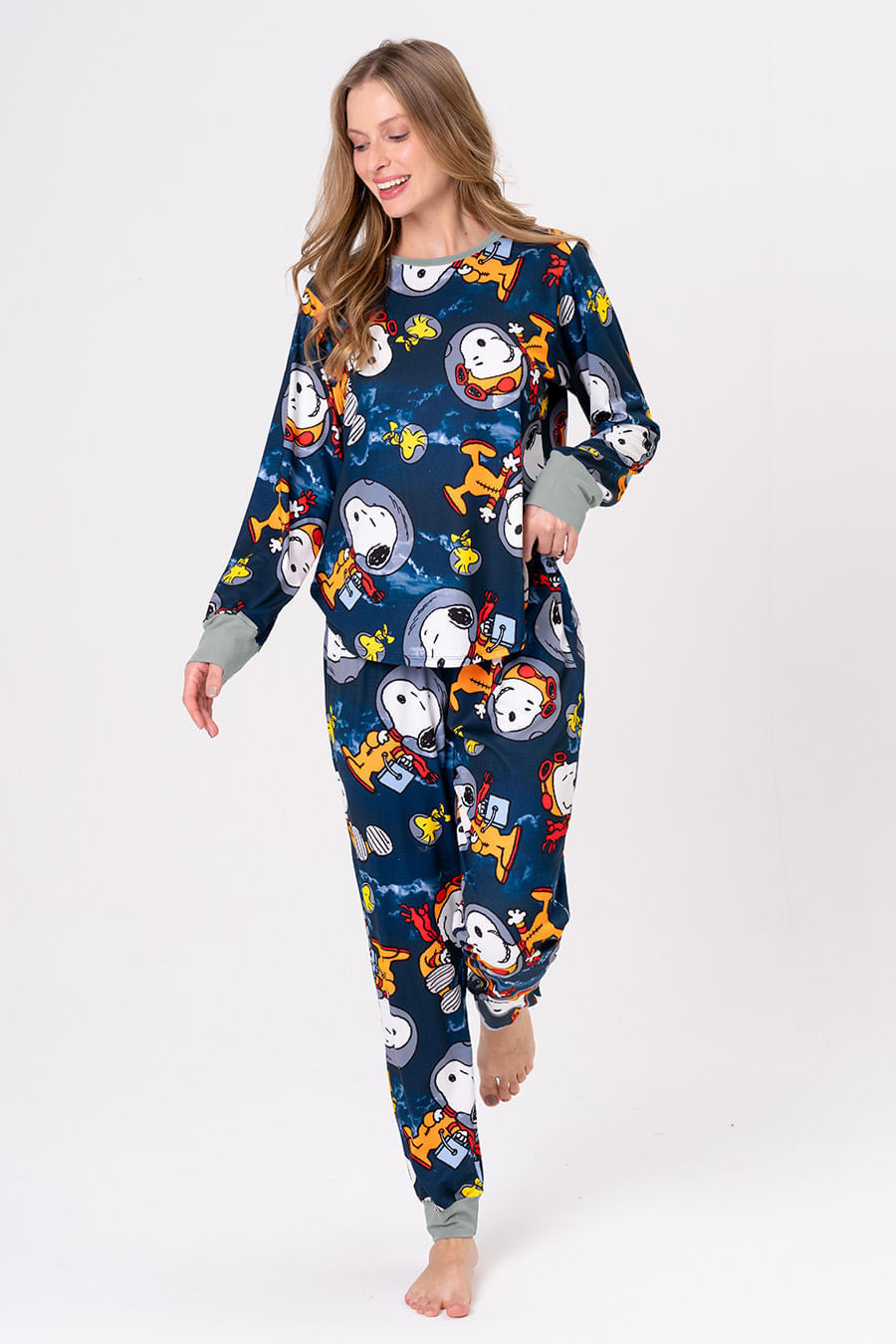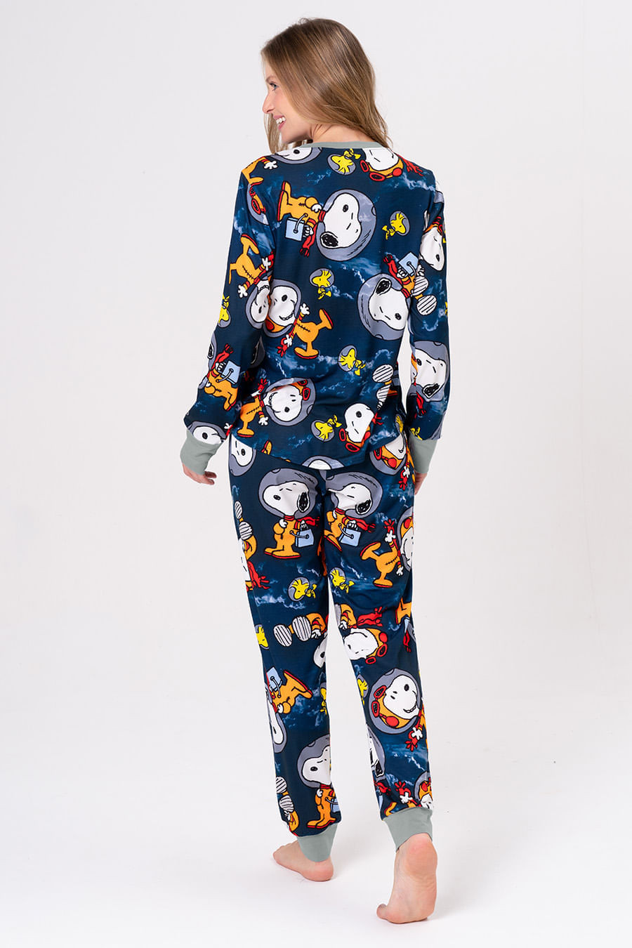 Snoopy foi o primeiro cachorro a ir ao espaço, e agora, embarca em uma nova missão! A coleção Snoopy Nauta chega em cores neon e cheia de personalidade, despertando a criatividade para noites de diversão em família. Seja construindo foguetes com caixas ou curtindo um filme com pipoca, a coleção Snoopy Nauta leva o universo Peanuts do nosso beagle favorito direto para casa. Pijama longo com a estampa exclusiva da coleção. Blusa com mangas longas e decote redondo. Calça com elástico na cintura e gorgorão para melhor ajuste na cintura. Combine com toda a família com os outros pijamas da coleção!