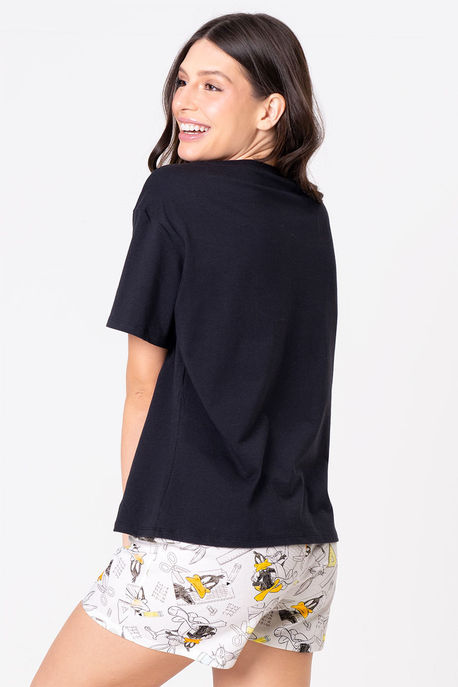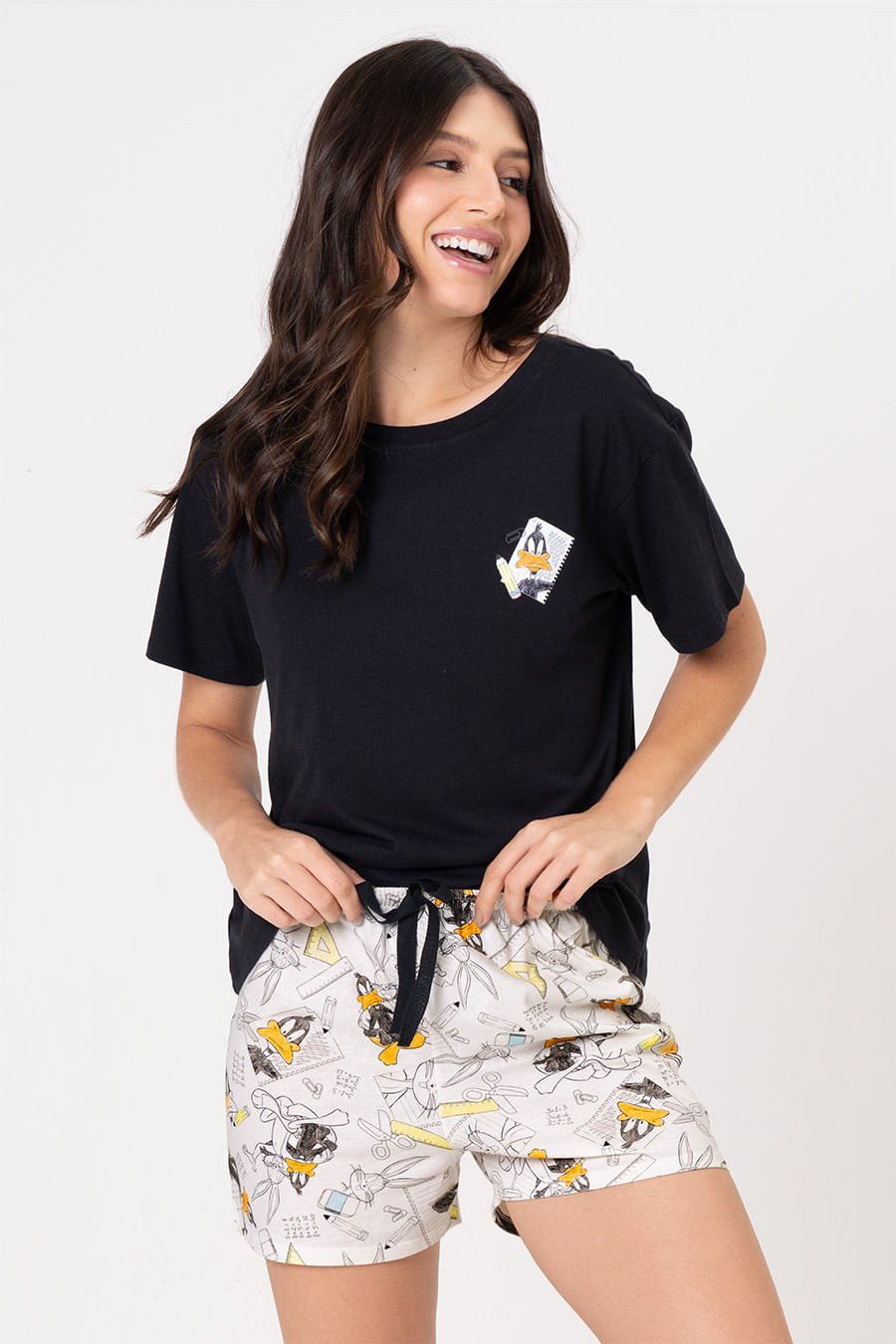 A coleção combina a nostalgia dos anos 90, quando a diversão era mais do que um toque na tela. A estampa exclusiva licenciada Warner Bros traz referências de papercraft, origami, recortes e colagens. A nossa dupla de amigos favorita, o Pernalonga e o Patolino, retorna entre papéis e formas, trazendo de volta aquele prazer de criar, imaginar e transformar o mundo ao nosso redor. Conjunto Confeccionado em malha de algodão, tecido bastante respirável e confortável. Fio natural, hipoalergênico que evita irritações na pele. Blusa de manga curta, com silk localizado e short com elástico e gorgorão em seu cós que se ajusta perfeitamente à cintura, garantindo conforto e facilidade ao vestir. Combine com toda a família com os outros pijamas da coleção!