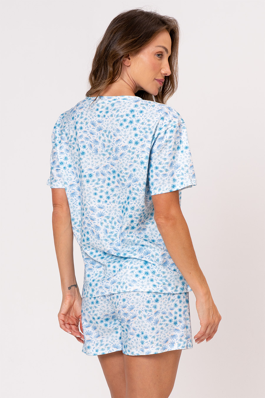 Raízes é uma coleção que convida ao retorno ao essencial. Inspirada na imagem da flor que floresce a partir da força invisível das raízes, celebra o equilíbrio entre beleza e profundidade. Pijamas que acolhem o corpo e a alma, conectando conforto, origem e autenticidade. Porque tudo o que floresce começa de dentro. Pijama curto confeccionado em malha de algodão, tecido bastante respirável e confortável. Fio natural, hipoalergênico que evita irritações na pele. Conjunto na estampa exclusiva da coleção, conta com blusa de mangas curtas e Short possui elástico em seu cós que se ajusta perfeitamente à cintura, garantindo conforto e facilidade ao vestir.