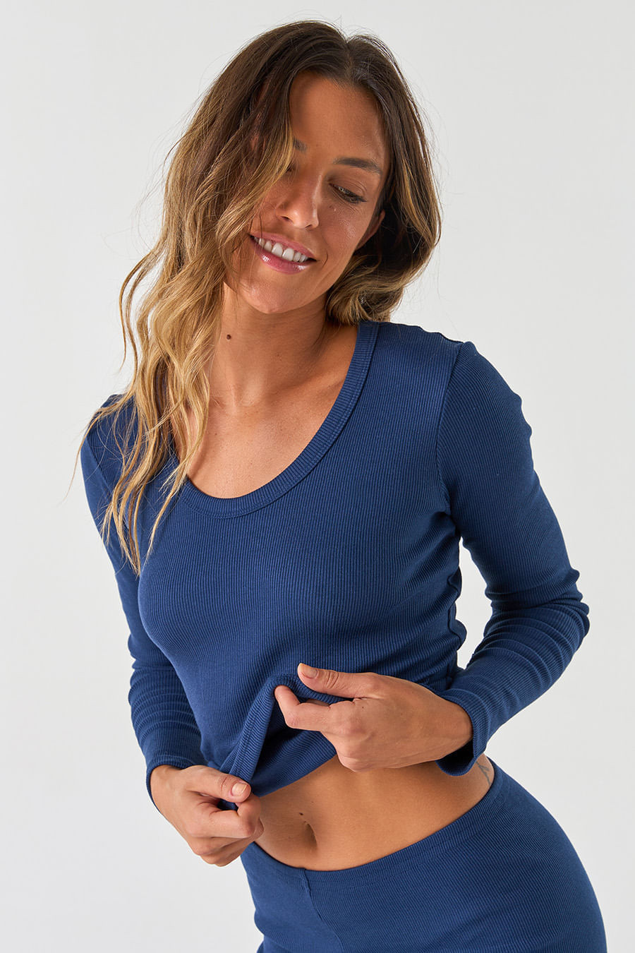 Versátil e atemporal é a definição ideal para a coleção de clássicos canelados, pensados especialmente para proporcionar conforto e praticidade para os que vestem. Peças Indispensáveis para ter no guarda-roupa. Confeccionado em ribana de algodão, que se destaca pela sua elasticidade e resistência. Ele é produzido a partir de uma mistura de algodão e elastano, o que lhe confere características únicas em termos de conforto e qualidade. A ribana de algodão é um tecido bastante maleável e confortável, que se ajusta ao corpo sem apertar ou limitar os movimentos. Conjunto liso. Blusa contém silk localizada na parte superior esquerda. Calça possui elástico no cós para maior ajuste ao corpo.
