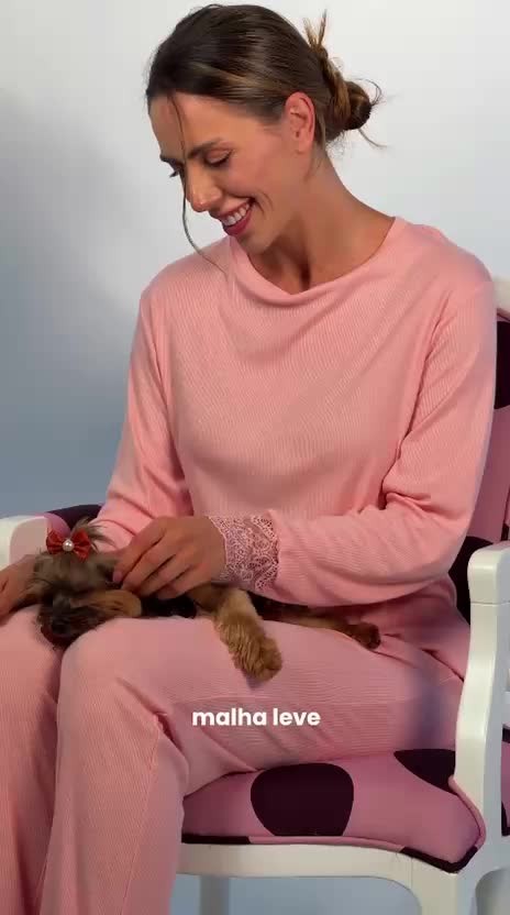 Confeccionado em ribana de viscose, este conjunto oferece toque macio, elasticidade confortável e excelente respirabilidade, proporcionando sensação de aconchego ao longo do uso. A blusa de manga longa se destaca pelo charme da renda delicada nos punhos, que acrescenta feminilidade e um toque romântico ao visual. A modelagem ampla favorece o caimento leve e confortável. A calça, também em ribana de viscose, possui cós elástico e caimento suave, oferecendo liberdade de movimento e praticidade.