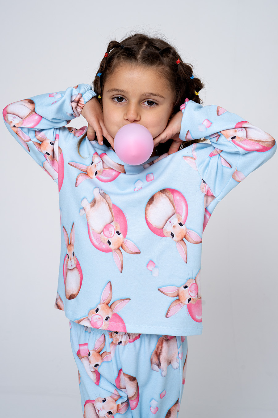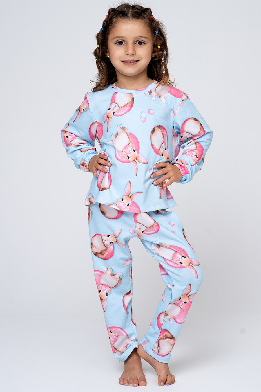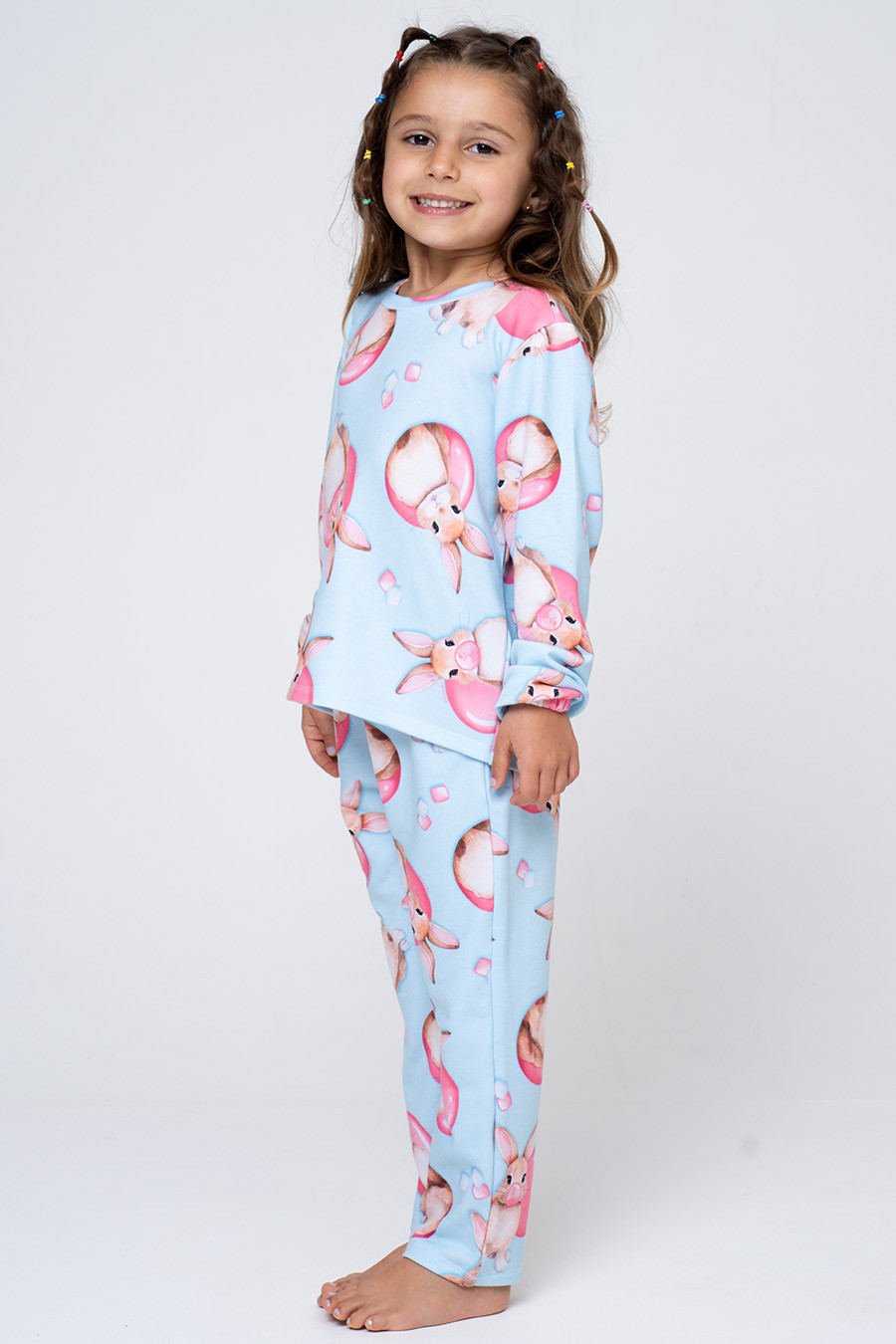Este conjunto é confeccionado em moletinho, garantindo toque macio e conforto térmico na medida certa. A blusa de mangas longas traz punhos com elástico, que proporcionam melhor ajuste e um acabamento delicado. A calça complementa o conjunto com elástico no cós, oferecendo praticidade, conforto e liberdade de movimentos, sem abrir mão do visual divertido e aconchegante.