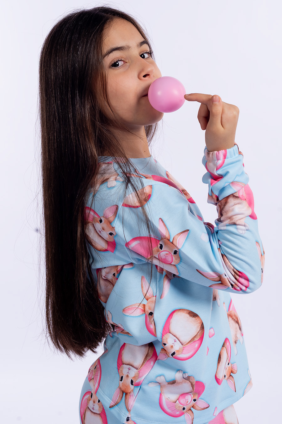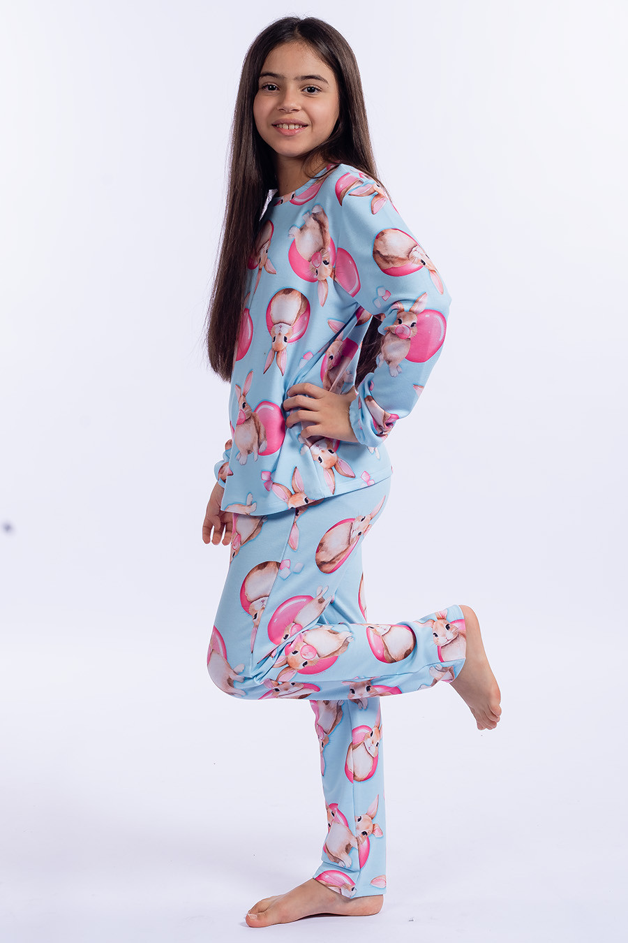 Este conjunto é confeccionado em moletinho, garantindo toque macio e conforto térmico na medida certa. A blusa de mangas longas traz punhos com elástico, que proporcionam melhor ajuste e um acabamento delicado. A calça complementa o conjunto com elástico no cós, oferecendo praticidade, conforto e liberdade de movimentos, sem abrir mão do visual divertido e aconchegante.