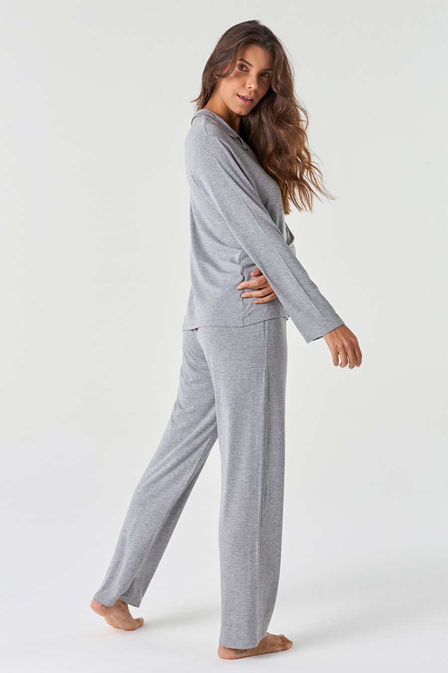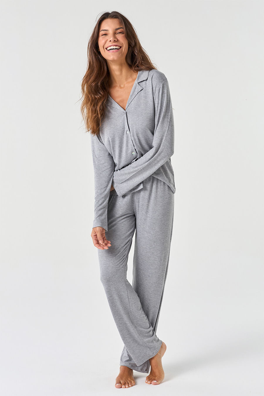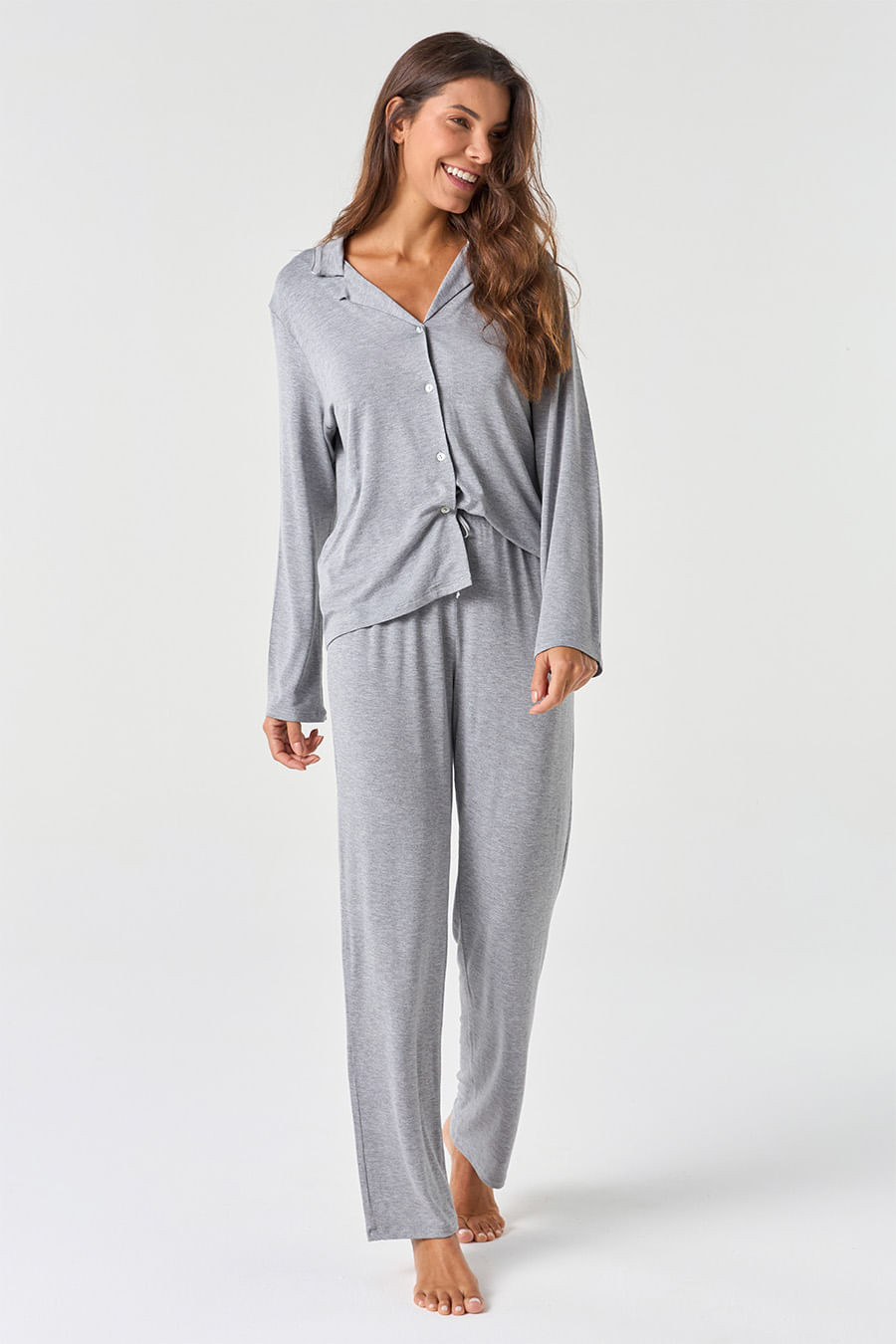 Básico e clássico, com cores sólidas e sem muitos detalhes, a coleção Clássicos Viscose é versátil e fácil de agradar. Ideal para presentear ou para se tornar seu pijama básico favorito.O design do pijama americano é conhecido por seu caimento solto e confortável, perfeito para uma noite de sono sem restrições. O estilo é descontraído e fácil de usar. A peça contém botões e gola em V perfeito para amamentação, calça com modelagem reta conta com elástico em seu cós que se ajusta perfeitamente à cintura, garantindo conforto e facilidade ao vestir.