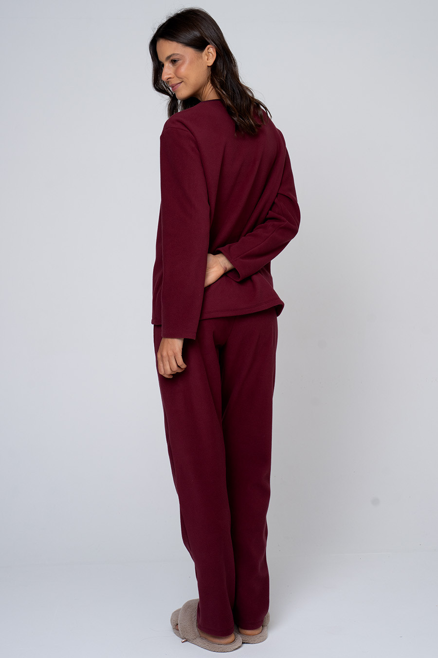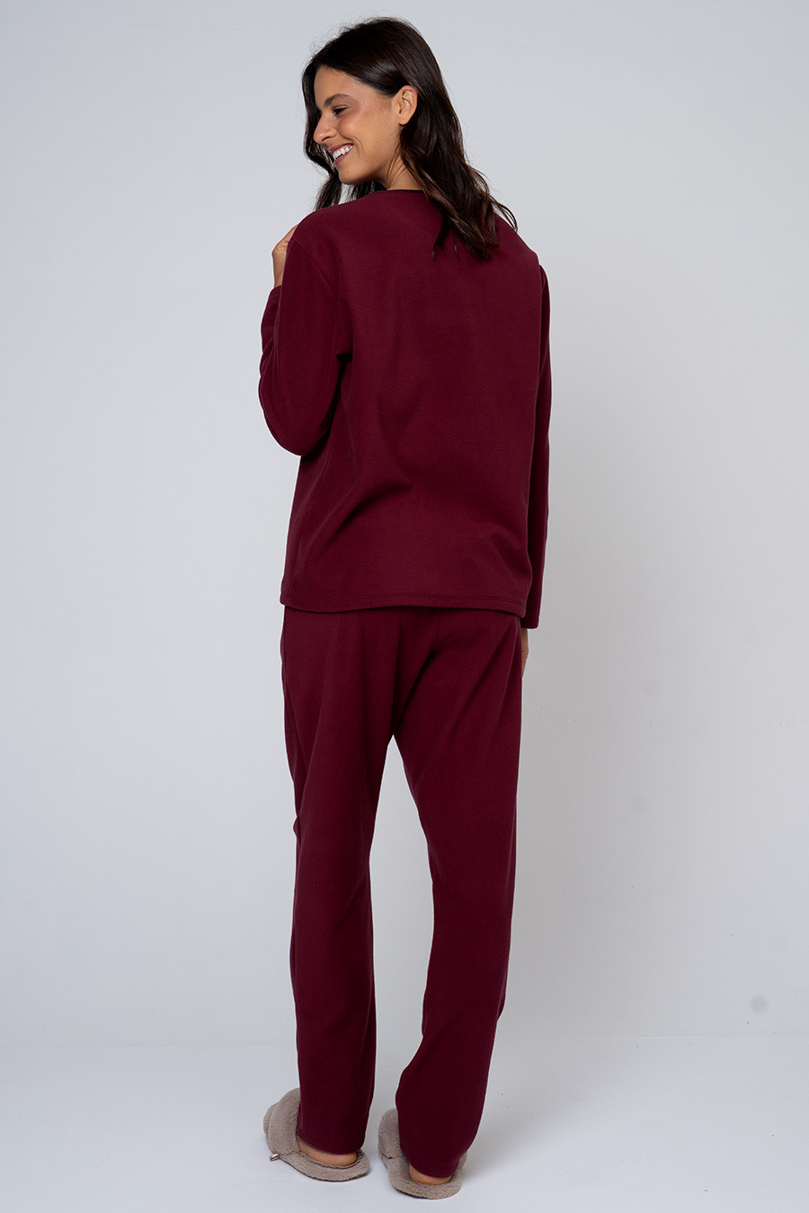 O pijama possui modelagem confortável, ideal para o uso diário em casa. A blusa de manga longa apresenta caimento solto e agradável ao vestir, enquanto a calça conta com elástico no cós, garantindo ajuste confortável e liberdade de movimento. Um conjunto prático e aconchegante, perfeito para relaxar com conforto e leveza.