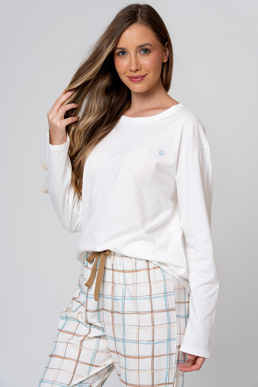 Conjunto confeccionado em meia malha, oferecendo toque macio e caimento confortável. A blusa tem modelagem solta, ideal para relaxar com liberdade. A calça conta com elástico no cós, garantindo ajuste prático, e detalhe em amarração, que adiciona charme à peça. Um conjunto versátil, perfeito para unir conforto e estilo de forma simples e elegante.