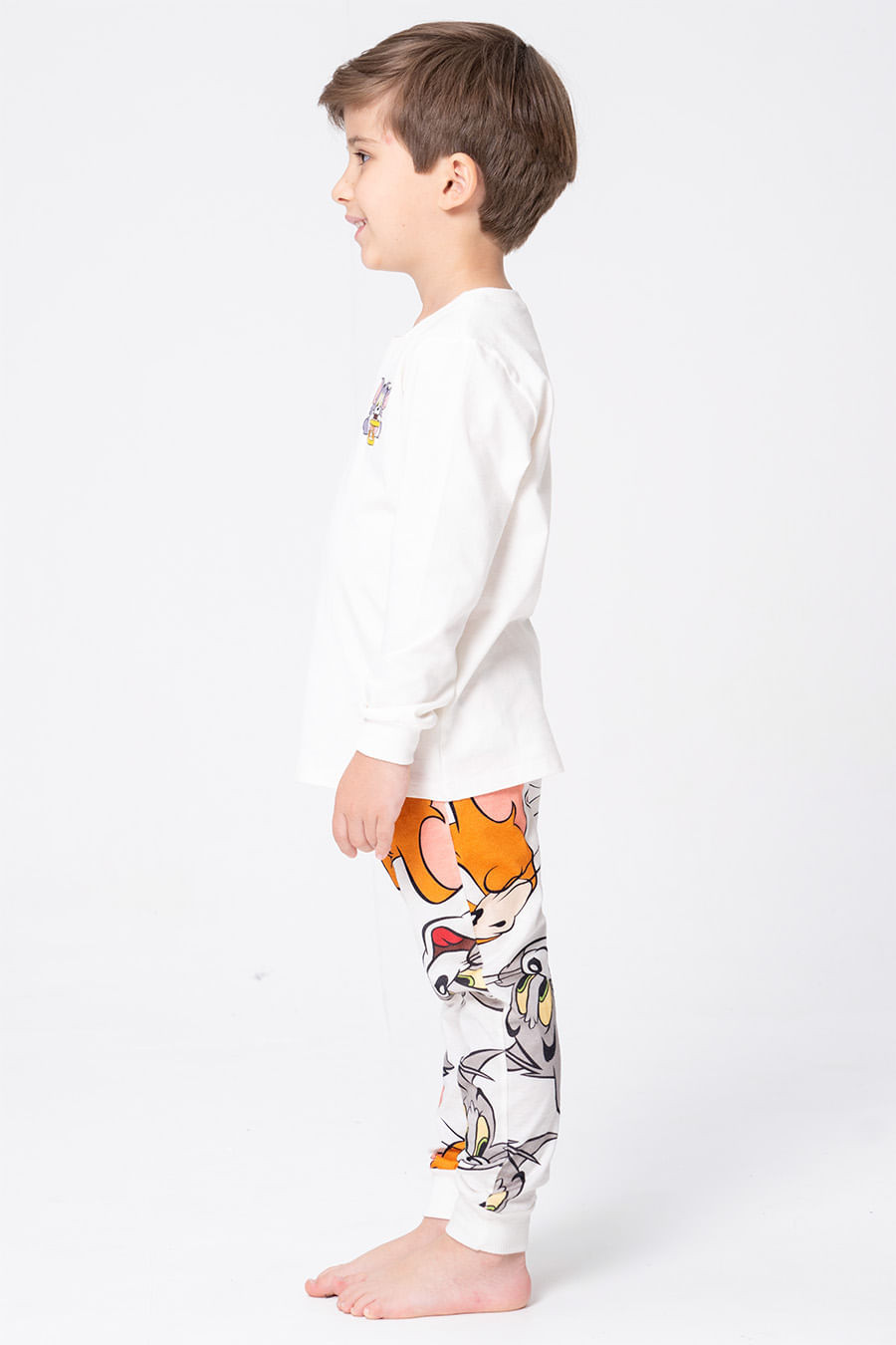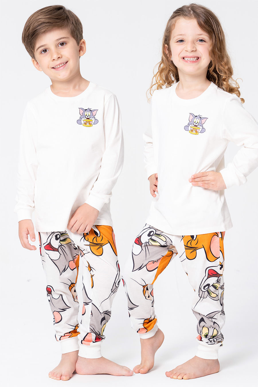 A nova coleção Diga Cheese é uma verdadeira explosão de alegria, inspirada na clássica e atemporal dupla Tom e Jerry, que representa a essência da diversão sem limites. Com cores vibrantes e personagens cativantes, a coleção traz à tona a nostalgia dos adultos, enquanto transmite uma energia de vivacidade e descontração, perfeita para toda família! Pijama longo confeccionado em algodão, tecido bastante respirável, confortável e macio. Fio natural, hipoalergênico que evita irritações na pele. Blusa ampla de manga longa, na cor branca, com estampa localizada. Calça com elástico e gorgorão em seu cós que se ajusta perfeitamente à cintura, garantindo conforto e facilidade ao vestir. Coleção Licenciada Oficial Warner Bros.