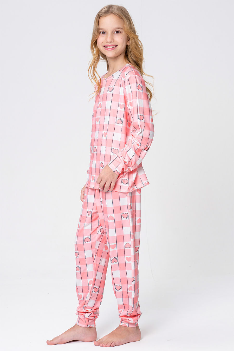 A coleção Pinknic traz uma versão jovem e animada do clássico vichy, com um toque lúdico que reflete momentos de aconchego e descontração.Perfeita para mulheres modernas e românticas, ela combina frescor e sofisticação, sendo uma escolha ideal para um presente único. Pijama com estampa exclusiva da coleção. Blusa de mangas longas com gola redonda. Calça possui elástico no cós e bolsos laterais.