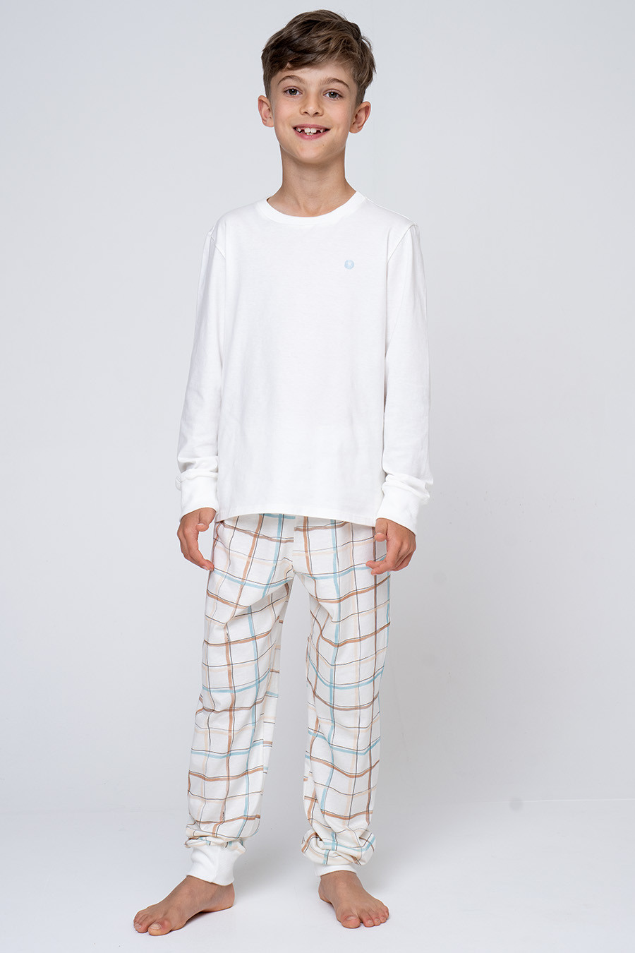 Este modelo juvenil é confeccionado em meia malha de algodão, garantindo toque macio e conforto ao longo do uso. A blusa de mangas longas tem caimento confortável, enquanto a calça conta com elástico no cós para melhor ajuste e punhos na barra, que ajudam a manter a peça no lugar e proporcionam mais aconchego, ideal para acompanhar os momentos de descanso com praticidade e liberdade de movimento.
