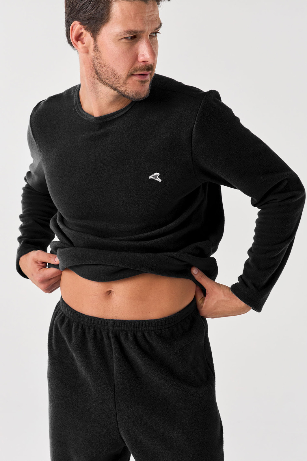 Confeccionados em soft, super quentinho apropriado para os dias frios, a coleção Clássicos Soft traz peças com modelagens básicas soltas ao corpo priorizando o conforto e aconchego de toda a família. Todo liso na cor azul. Blusa contém silk localizada na parte superior esquerda. Calça possui elástico no cós para maior ajuste ao corpo.