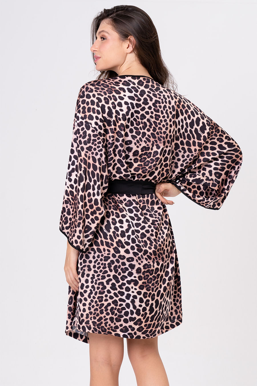 Quando falamos em força feminina, os felinos são os primeiros a rugir. Independentes, ágeis e majestosas, as pumas representam a coragem, a liderança e o instinto protetor que habitam em cada mulher. Inspirada por essa energia selvagem e elegante, a coleção Feline traz peças que celebram o poder feminino em sua forma mais autêntica, para mulheres que sabem quem são e não têm medo de mostrar sua força. Robe confeccionado em tecido acetinado Gloss, com toque de seda, que proporciona liberdade de movimento. Esta peça conta com mangas ¾, e amarração frontal. Ideal para complementar seu conjunto de Short Doll ou Camisola da mesma coleção.