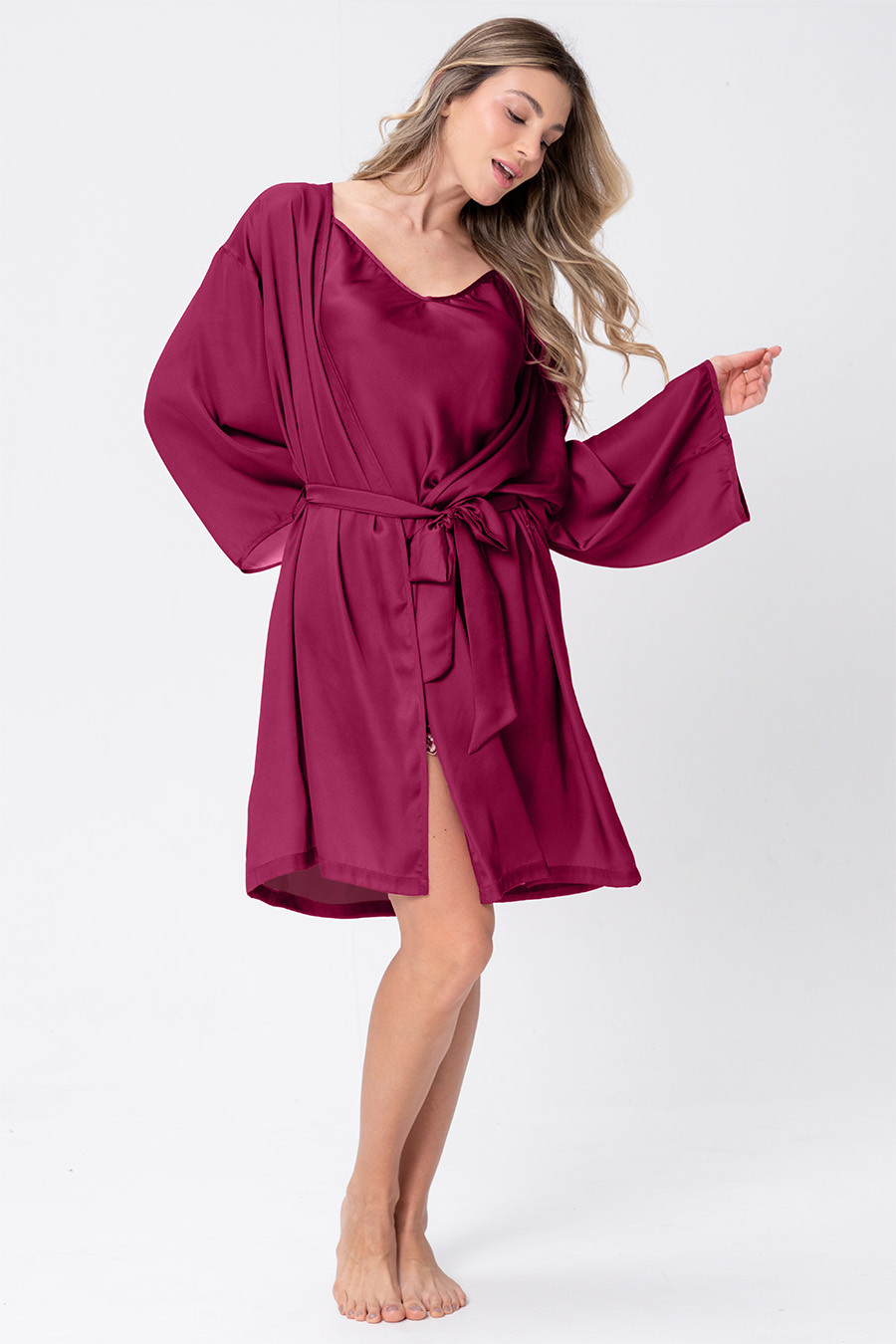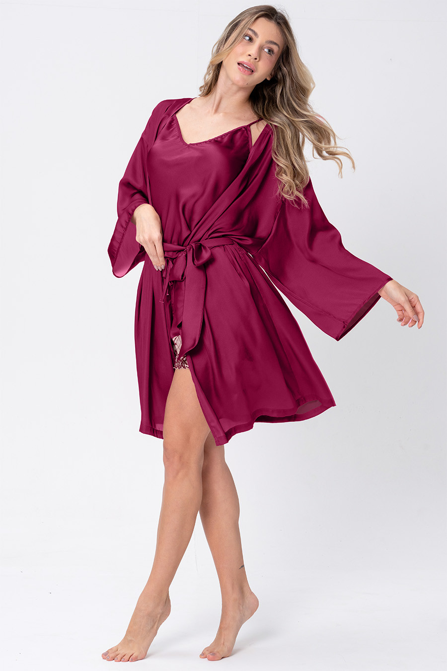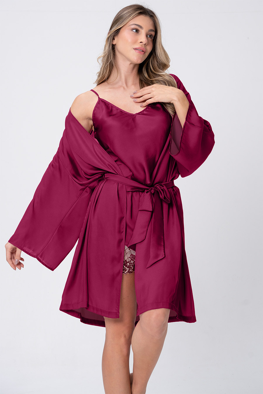 Atemporal, que nunca sai de moda. Nossa coleção Clássicos Acetinados reúne tudo que buscamos em pijamas elegantes, recortes clássicos e as modelagens mais vendidas da Acuo com cores trends que se renovam a cada estação seguindo as tendências das passarelas. Robe confeccionado em tecido acetinado Gloss, com toque de seda, que proporciona liberdade de movimento. Esta peça conta com mangas ¾, e amarração frontal. Ideal para complementar seu conjunto de Short Doll ou Camisola da mesma coleção. Lavar separadamente pois pode haver migração de cor.