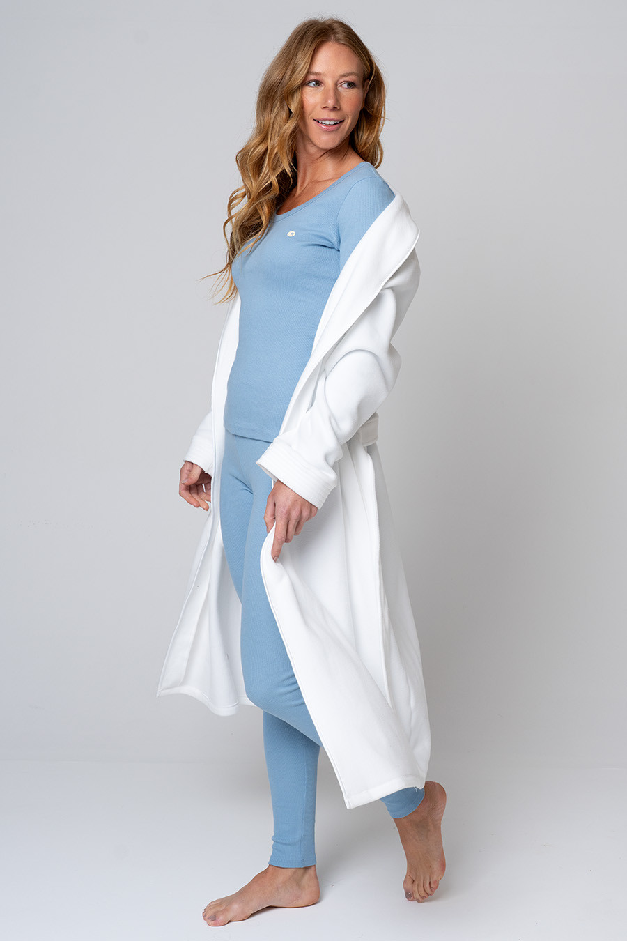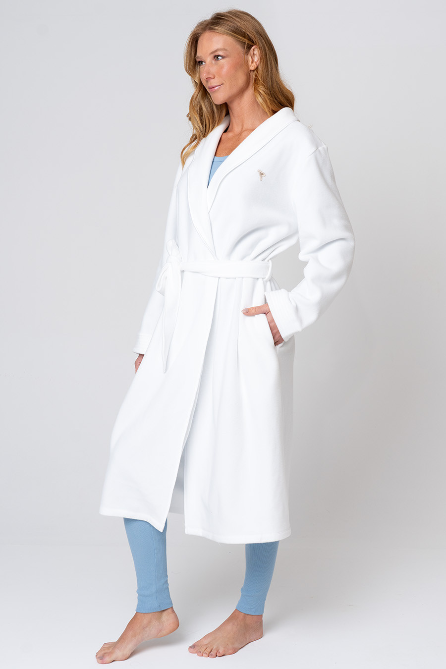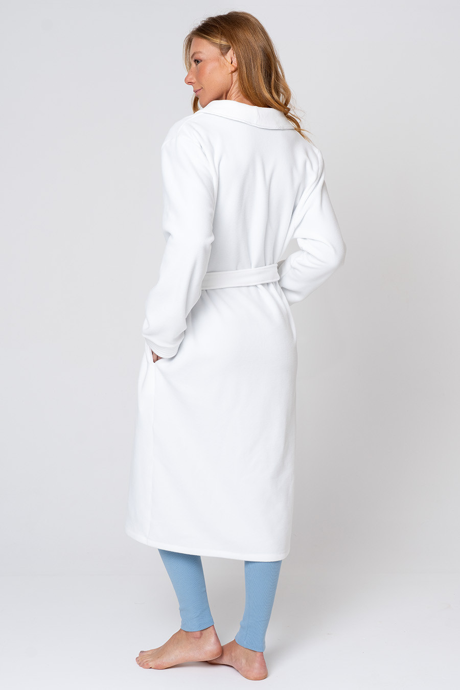 O robe possui modelagem clássica e atemporal, com mangas longas, bolsos frontais funcionais e faixa para amarração, garantindo praticidade e ajuste confortável ao corpo. Um modelo aconchegante e versátil, ideal para acompanhar a rotina em casa com conforto e elegância.