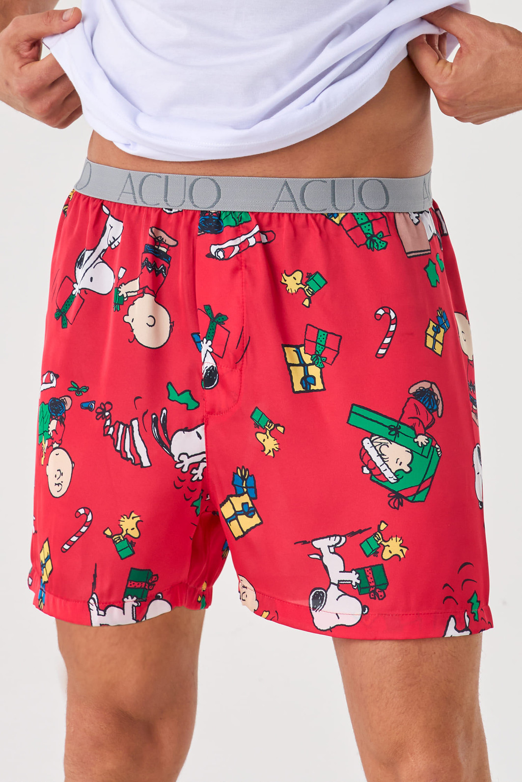 A coleção do Snoopy é uma coleção divertida que traz estampas inspiradas no desenho animado da Warner Bros. Esta coleção é perfeita para quem busca peças confortáveis, cheias de estilo e que trazem boas lembranças do natal. Samba canção confeccionada em tecido acetinado ou toque de seda, que proporciona liberdade de movimento e uma sensação fresca durante as noites mais quentes. Conta com a estampa exclusiva da coleção além de elástico amplo e escrita Acuo no cós.