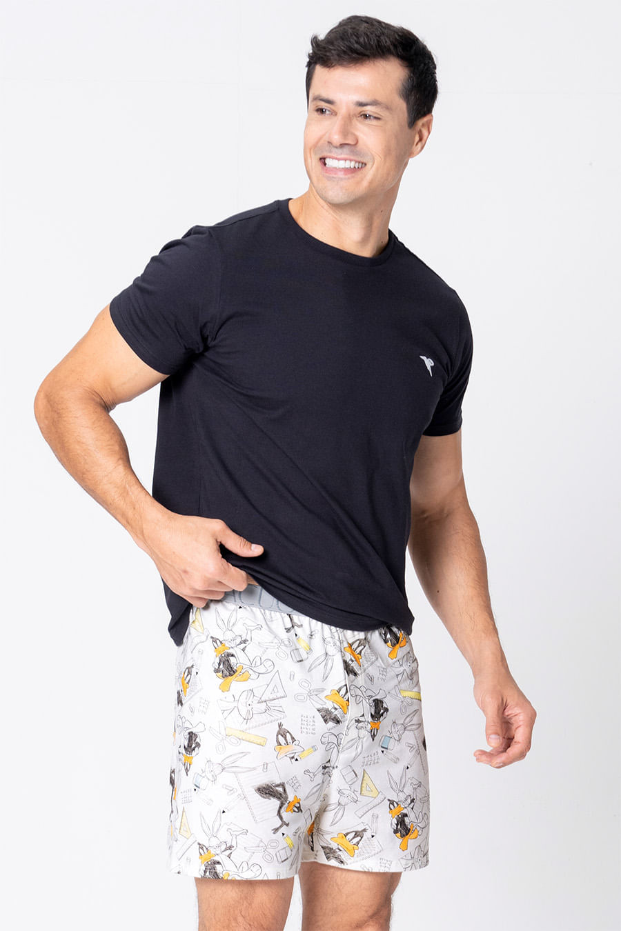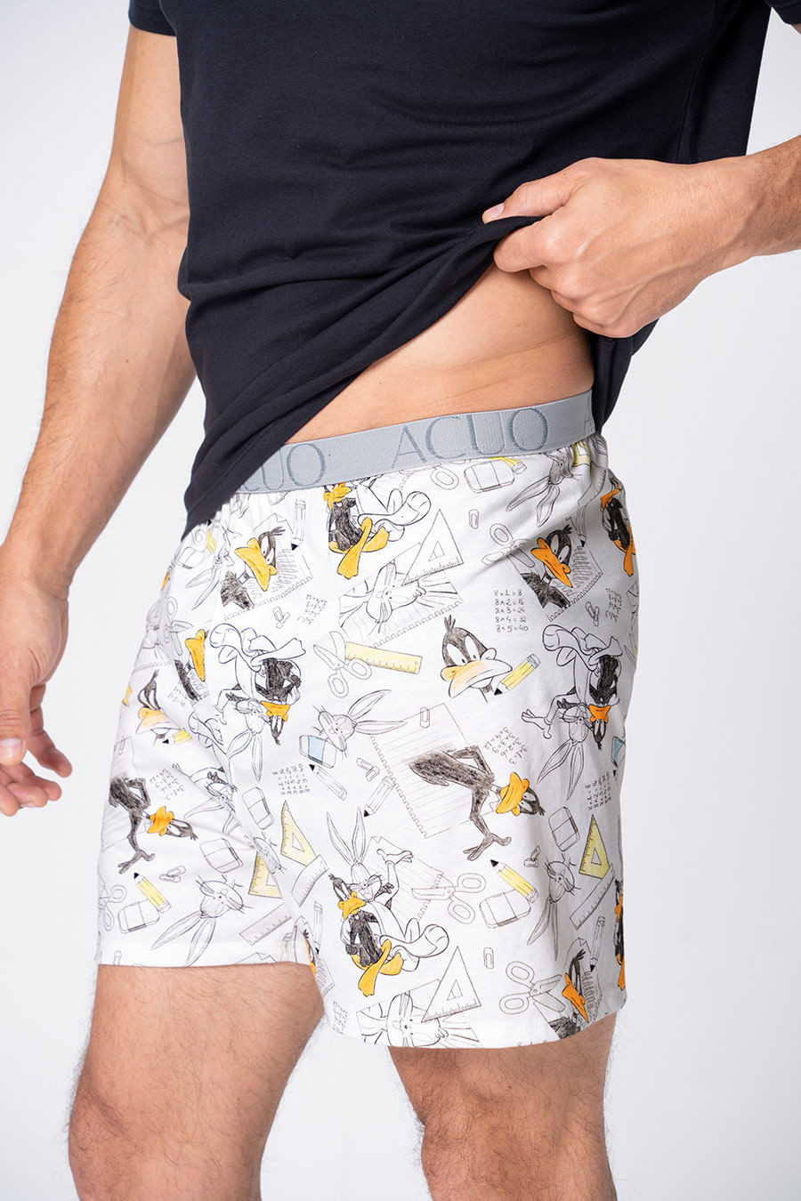 A coleção combina a nostalgia dos anos 90, quando a diversão era mais do que um toque na tela. A estampa exclusiva licenciada Warner Bros traz referências de papercraft, origami, recortes e colagens. A nossa dupla de amigos favorita, o Pernalonga e o Patolino, retorna entre papéis e formas, trazendo de volta aquele prazer de criar, imaginar e transformar o mundo ao nosso redor. Samba canção confeccionada em malha de algodão, tecido bastante respirável. Fio natural, hipoalergênico que evita irritações na pele. Conta com a estampa Looney tunes geração raiz, exclusiva da coleção, além de elástico amplo e escrita Acuo no cós que se ajusta perfeitamente à cintura. Use a Camiseta de Algodão Eterno Masculino para complementar. Combine com toda a família com os outros pijamas da coleção!