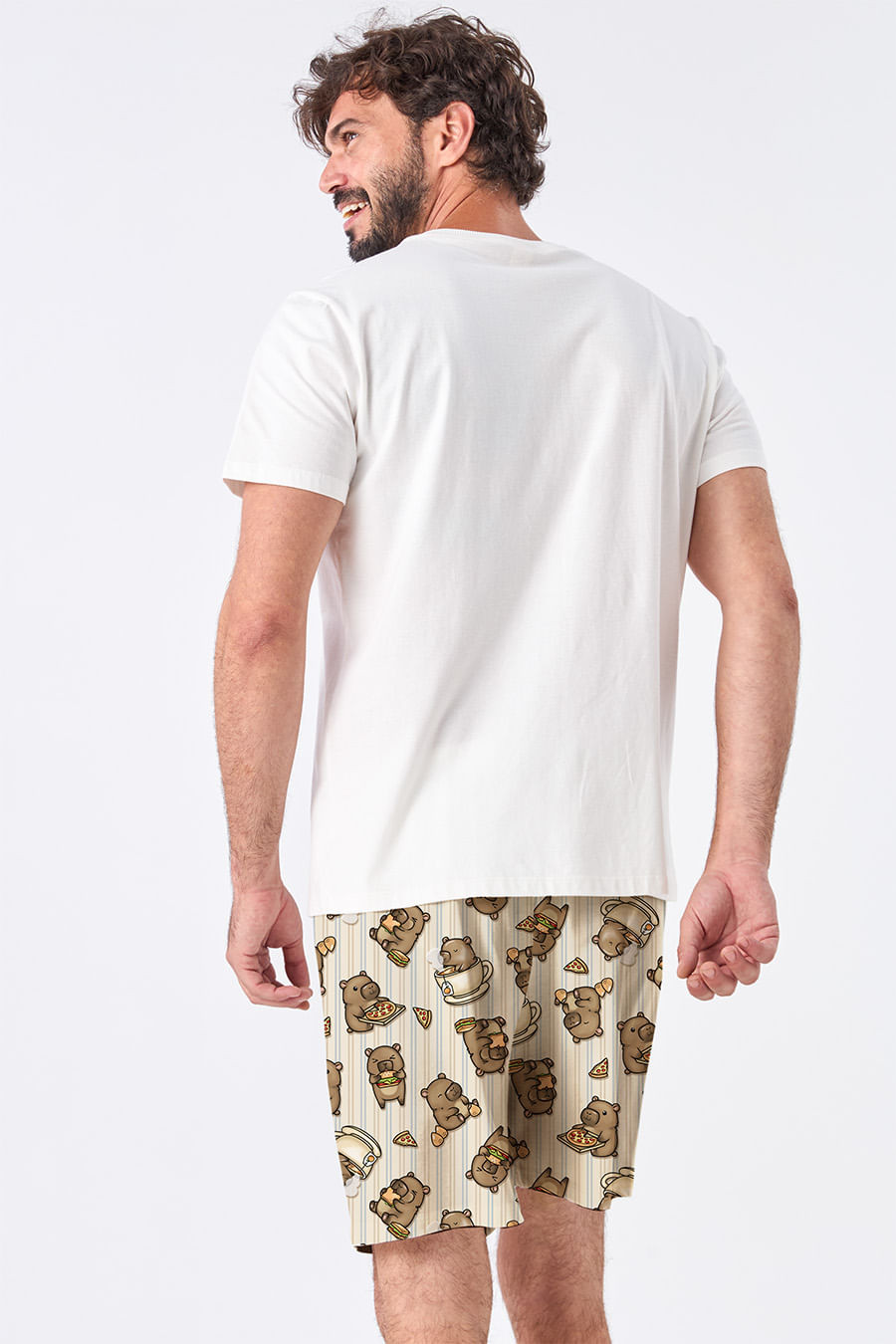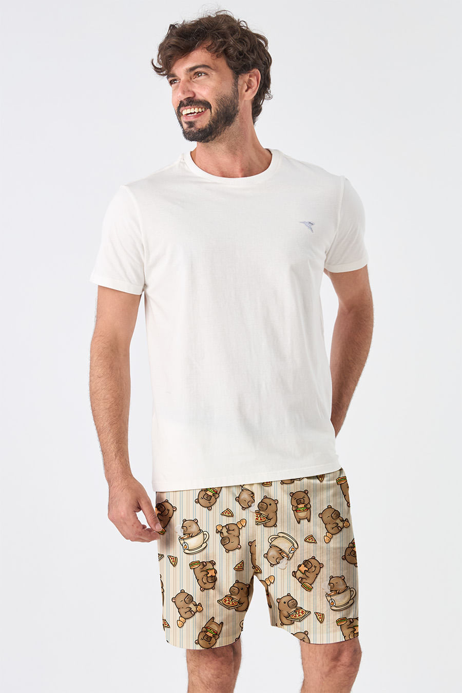 As capivaras estão em festa! E não é qualquer festa, é uma capifestinha com pizza, coxinha, hambúrguer vegano e muita personalidade. Inspirada nessas queridinhas tão calmas quanto carismáticas, a coleção Capivaras celebra o estilo tranquilo e cheio de charme. A estampa exclusiva Acuo traz cenas divertidas dessa festinha animal, em peças super confortáveis e aquele toque de humor que a gente ama. Samba canção confeccionada em tecido com toque macio e muito confortável, perfeito para o dia a dia.Conta com a estampa exclusiva da coleção, além de elástico amplo e escrita Acuo no cós que se ajusta perfeitamente à cintura. Use a Camiseta de Algodão Eterno Masculino para complementar. Combine com toda a família com os outros pijamas da coleção!