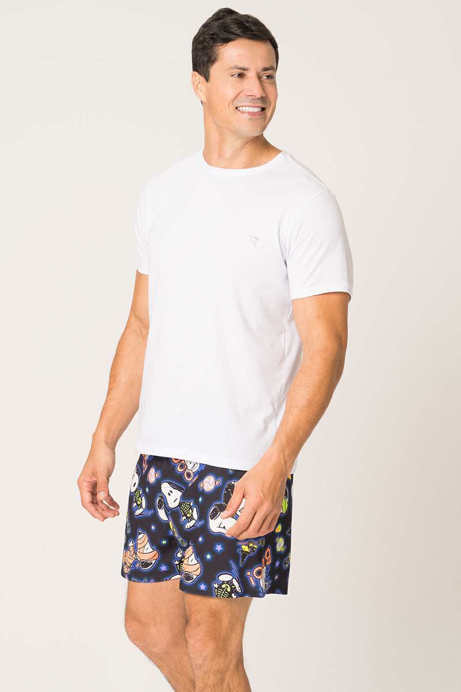 Samba canção confeccionada em tecido skin light, macio e confortável que se adapta bem ao corpo. É um tecido resistente e durável, que não encolhe nem desbota facilmente. Fácil de lavar e secar, e mantém sua forma mesmo após várias lavagens. Conta com a estampa exclusiva da coleção além de elástico amplo e escrita Acuo no cós. Use a Camiseta de Algodão Eterno Masculino para complementar. Perfeito para combinar com sua namorada, esposa e com toda a família com outros pijamas da coleção.